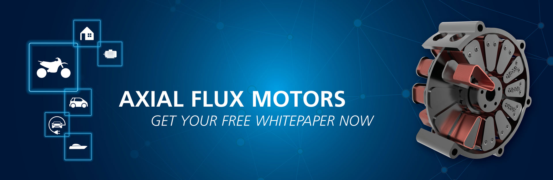 Request our free whitepaper now and learn more about the main challenging factors for the construction of the axial flux motor and the reliable and high-performance GROB solutions.